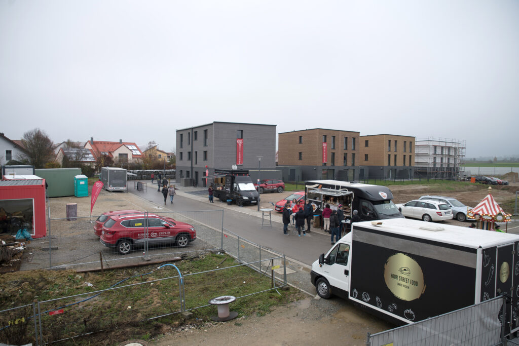 Fertigstellung der Doppelhäuser und Baubeginn des nachhaltigen Mehrfamilienhauses wird zum Event mit Street-Food-Trucks!